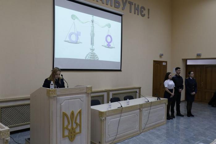 Привітала учасників квесту Урядова уповноважена з питань гендерної політики Катерина Левченко. Вона зазначила, що питання гендерної рівності порушують в суспільстві багато правових, організаційних, культурних питань, які сьогоднішні курсанти й курсантки, а в майбутньому фахівці, повинні будуть враховувати у своїй діяльності. Участь у гендерному квесті допоможе їм набути необхідних знань.