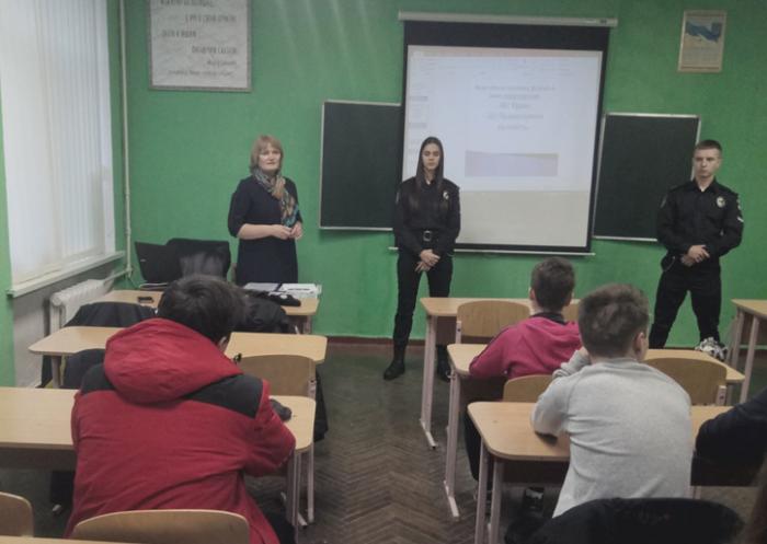 Під час зустрічі школярам розповіли про умови вступу та особливості підготовки у Сумській філії Харківського національного університету внутрішніх справ за спеціальностями «Право» та «Правоохоронна діяльність», а також про особливості навчання за державним замовленням (курсанти). Проведено було анкетування серед школярів щодо майбутньої професії та лекцію «Маю право на безпечний інтернет».