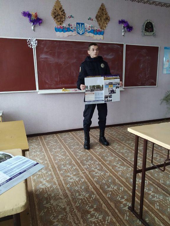 Аліса Сіліна, Сергій Тригуб, Дарина Матвієнко відвідали загальноосвітні школи у м. Слов’янськ Донецької області, с. Кам’янка Новопсковського району та смт. Новопсковськ Луганської області. Під час профорієнтаційних заходів учні 11-х класів отримали інформацію про університет. Курсанти розповіли про переваги навчання у поліцейському виші, про факультети та спеціальності, за якими готують фахівців, про порядок вступу та подальше навчання за обраними спеціальностями тощо.