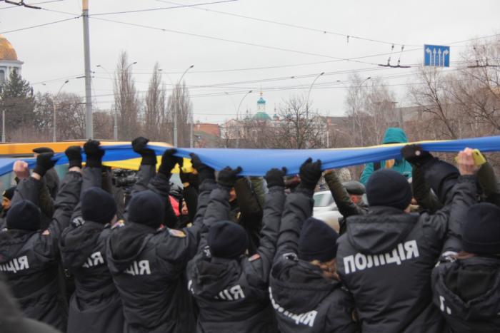 З нагоди відзначення Дня Соборності України студенти, курсанти та слухачі Сумської філії Харківського національного університету внутрішніх справ долучилися до міської акції «Ланцюг єдності».