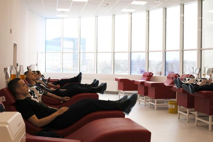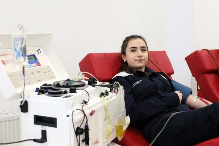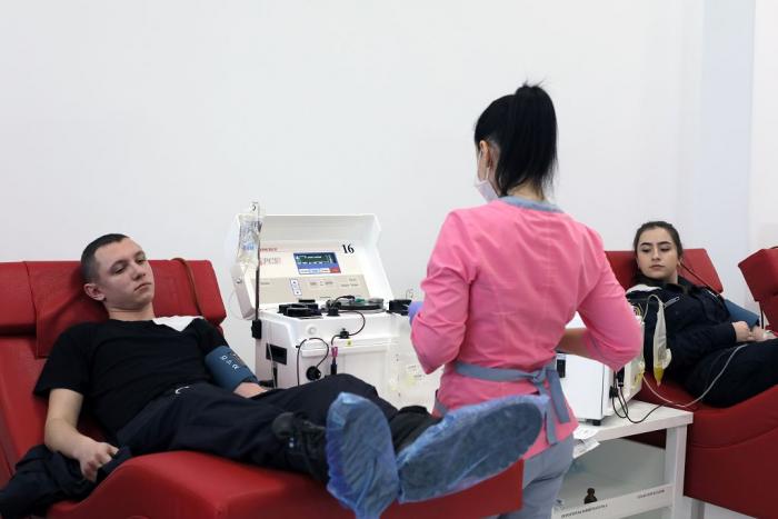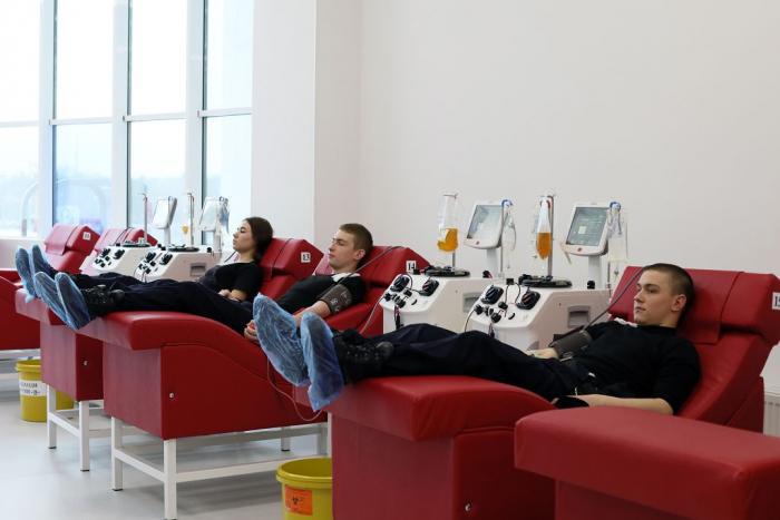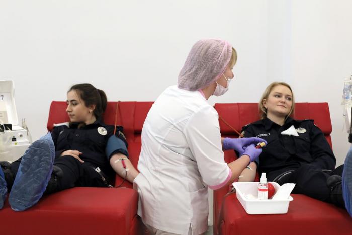 Курсанти Харківського національного університету внутрішніх справ долучилися до безстрокової благодійної акції під назвою «Червона лінія життя». Першими до Харківського обласного центру заготівлі та переробки плазми «Харків-Плазма» прийшли курсанти та магістри факультету № 1 (досудового слідства). Курсанти університету постійно надають донорську допомогу – здають кров у Харківському обласному центрі служби крові, яка необхідна для хворих, поранених бійців ООС, або для виготовлення медичних препаратів. Цього разу юнаки та дівчата виявили бажання надати плазму, на основі якої будуть виготовлені безкоштовні ліки для дітей, хворих на онкологію, для зміцнення їх імунітету після виснажливої хіміотерапії. Перед початком процедури кожний потенційний донор проходить огляд у терапевта, здає кров на аналіз, результати якого завдяки сучасному обладнанню готові за кілька хвилин.