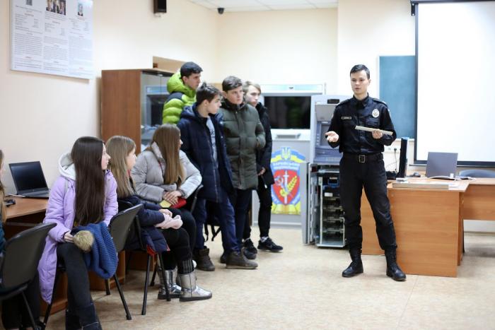 Для майбутніх вступників також провели ознайомчу екскурсію територією університету. Вони відвідали навчально-тренувальні полігони – відділ поліції; протидії злочинам в сфері торгівлі людьми, що вчиняються з використанням інформаційних технологій; центр протидії кіберзлочинності та моніторингу кіберпростору; аудиторію-амфітеатр. Юнаки та дівчата також відвідали музей університету.