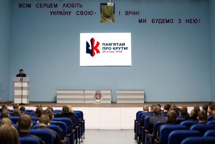 Працівниками відділу соціально-гуманітарної роботи для курсантів Харківського національного університету внутрішніх справ було організовано та проведено відеолекторій до Дня вшанування пам’яті Героїв Крут. Працівник музею університету Андрій Прохоров розповів про історичні події 1918 року, звернув увагу присутніх на високий патріотизм та відвагу молоді тих років, значимість бою під Крутами для свободи та незалежності України. Під час лекторію було також продемонстровано військовий однострій захисників України тих часів.