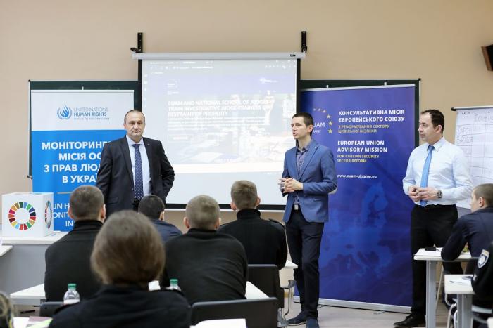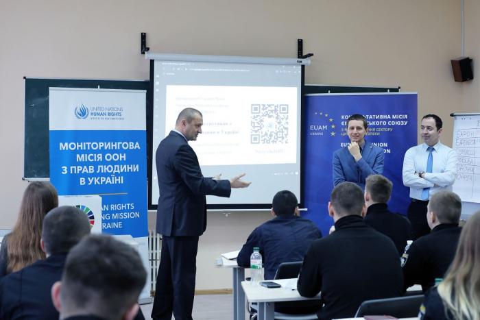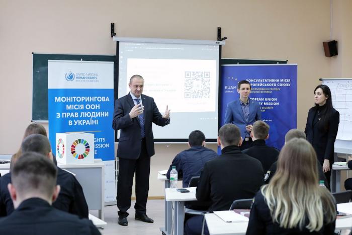 Для курсантів і студентів Харківського національного університету внутрішніх справ проведено семінар на тему «Права людини». У заході взяли участь Координатор Регіонального представництва Консультативної місії Європейського Союзу у м. Харкові Роберт Жулкєвскі, радник/тренер з питань верховенства права Регіонального представництва Консультативної місії Європейського Союзу в м. Харків Саер Аммар та представники Харківського офісу Моніторингової місії ООН з прав людини.