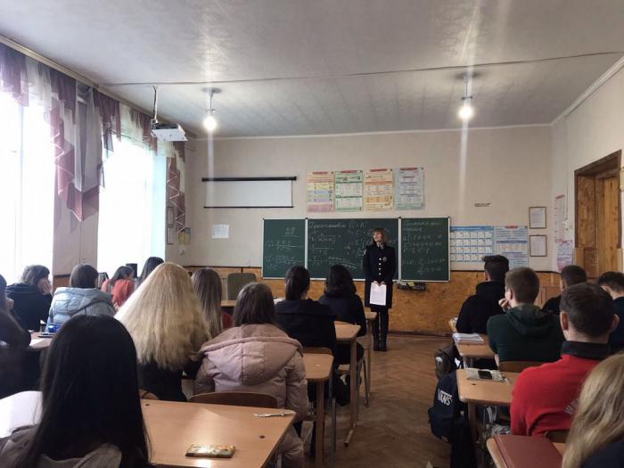 Під час зустрічі зі школярами представник кадрового забезпечення наголосила, що спільна з університетом правоосвітня робота серед молоді є важливою складовою у професійній орієнтації молоді для підготовки кваліфікованих спеціалістів для правоохоронних органів України.