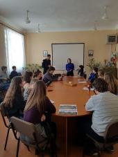 Працівники факультету № 5 – провідний фахівець Станіслав Потопальський та фахівець Ольга Петросянц – провели зустріч зі школярами випускних класів Харківської загальноосвітньої школи І-ІІІ ступенів № 69. Випускникам розповіли про умови вступу та навчання у Харківському національному університеті внутрішніх справ, про порядок підготовки та надання документів для вступу на бюджетну та заочну форми навчання.