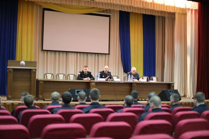 Зі слухачами підвищення кваліфікації та первинної професійної підготовки зустрілися ректор університету полковник поліції Дмитро Швець та перший проректор підполковник поліції Сергій Бортник, які наголосили на необхідності поповнення знань та професійному зростанні, а висококваліфікований науково-педагогічний колектив університету та сучасна матеріальна база створюють для цього належні умови.