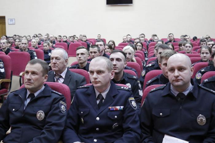 Звертаючись до майбутніх поліцейських Дмитро Швець закликав їх проявити себе старанними й наполегливими, щоб у подальшому сумлінно нести службу в лавах Національної поліції. Виконати програму стажування, провести профорієнтаційні зустрічі у рамках акції «Відвідай рідну школу» закликав курсантів перший проректор Сергій Бортник. Продовжити навчання у магістратурі на факультеті № 5 майбутнім випускникам університету запропонував Михайло Бурдін.