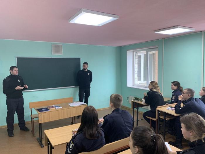 Поліцейські поділилися з курсантами досвідом практичної роботи. Звернули увагу присутніх на особливості роботи з документами, тактику спілкування з громадянами, особливості розслідування дорожньо-транспортних пригод, злочинів проти власності, наркозлочинності, сімейного насилля, профілактичної роботи з дітьми. Обговорили позитивні зміни внаслідок впровадження поліцейської реформи тощо.