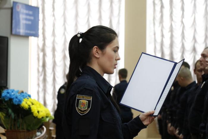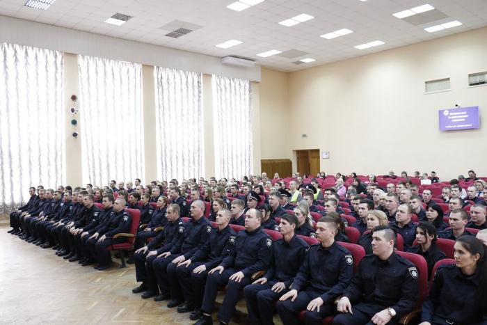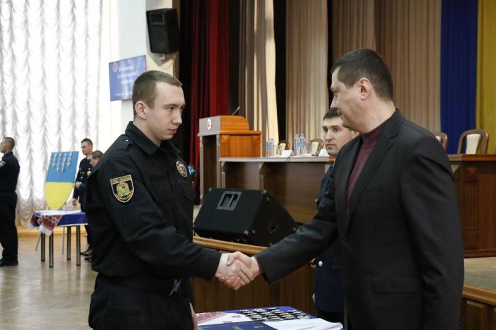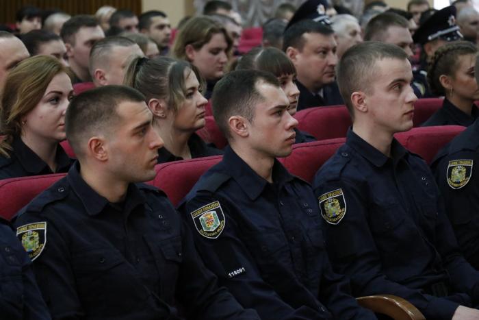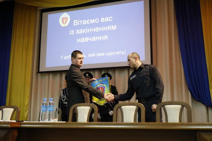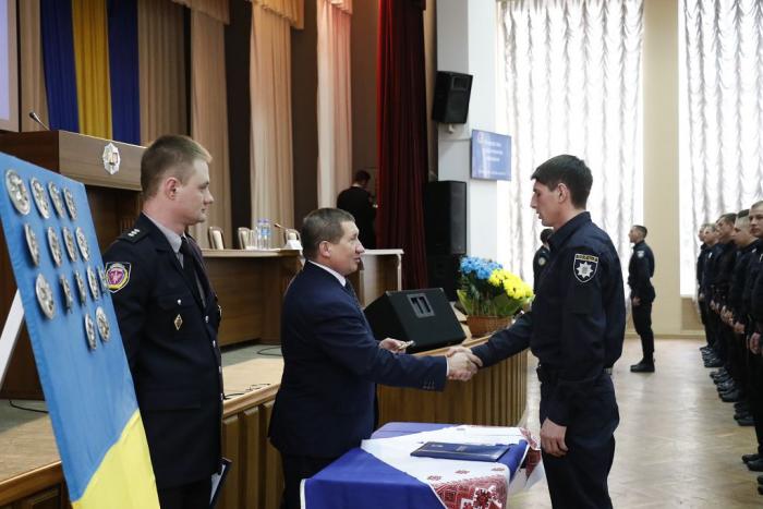 З урочистою подією слухачів курсів привітали проректори університету Михайло Бурдін та Анатолій Клочко, які побажали наснаги, успіхів у службі та вручили жетони поліцейських.