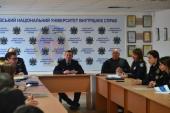 У межах національно-патріотичного виховання молоді та актуалізації практичної складової у навчально-виховному процесі курсантів, для участі в круглому столі було запрошено інспектора взводу № 1 роти патрульної служби поліції особливого призначення «Суми» ГУНП в Сумській області, старшого лейтенанта поліції Сергія Халімоненка, який є учасником бойових дій на Сході України, за героїзм та відвагу нагороджений державними відзнаками. Сергій Халімоненко розповів присутнім про участь в АТО і ООС, висвітлив низку важливих проблем у екологічній та трудовій сфері, які пов’язані з бойовими діями на територій Донецької та Луганської областей, а також відповів на запитання членів наукового гуртка.