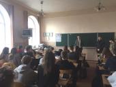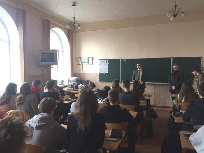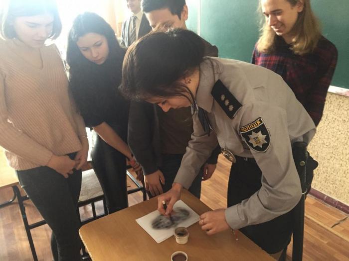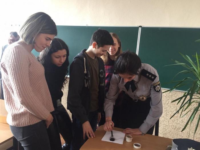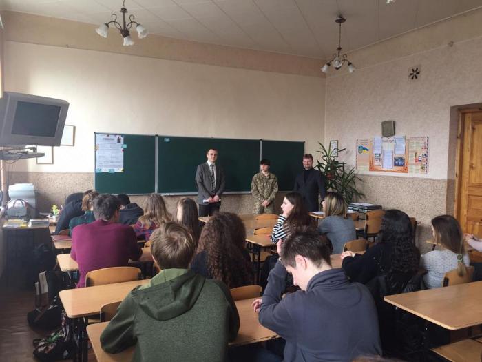 Під час спілкування зі старшокласниками 10-х та 11-х класів представники факультету провели бесіди на тему «Вступ на навчання до ХНУВС», під час яких ознайомили молодь зі спеціальностями, умовами навчання, матеріально-технічною базою університету та правилами прийому. Олександр Хань прочитав учням лекцію на тему «Роль Національної поліції України в охороні прав і свобод людини, передбачених Загальною декларацією прав людини 1948 року» у межах «Тижня права». Дар’я Балаш та Ольга Савостіна продемонстрували учням роботу експерта-криміналіста та провели тренінг з правил поведінки в екстремальних умовах.