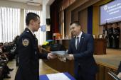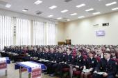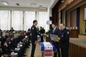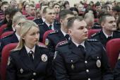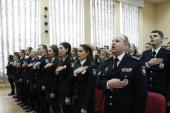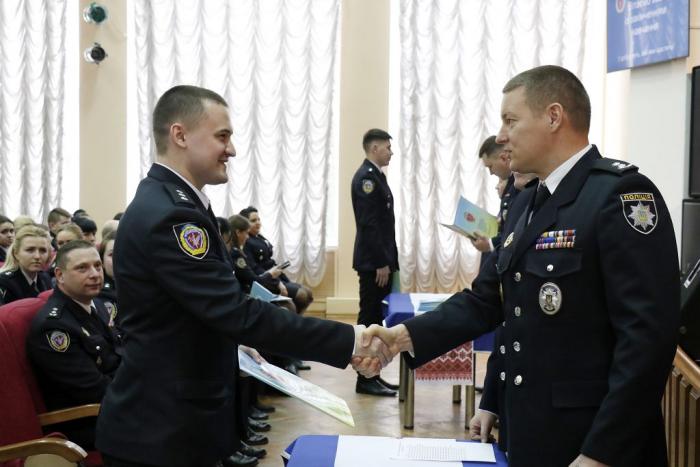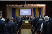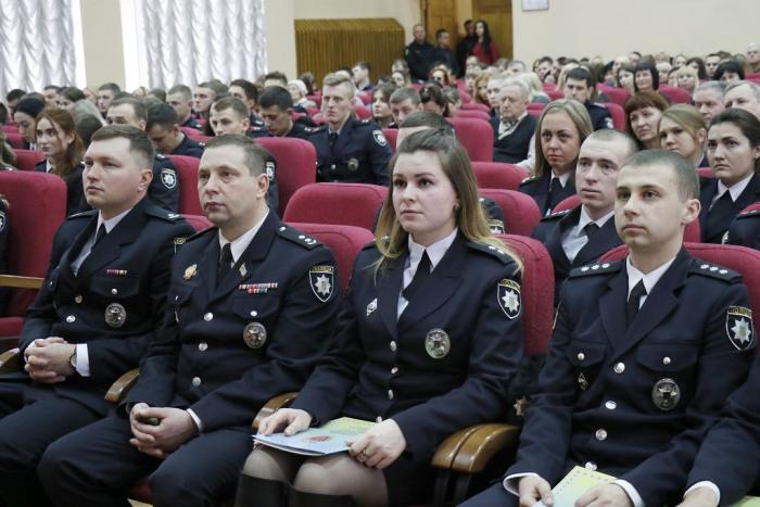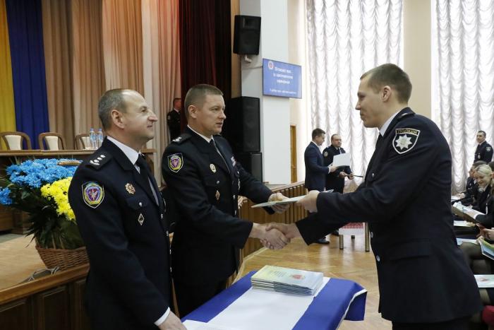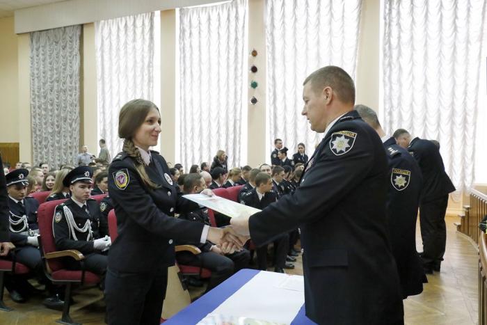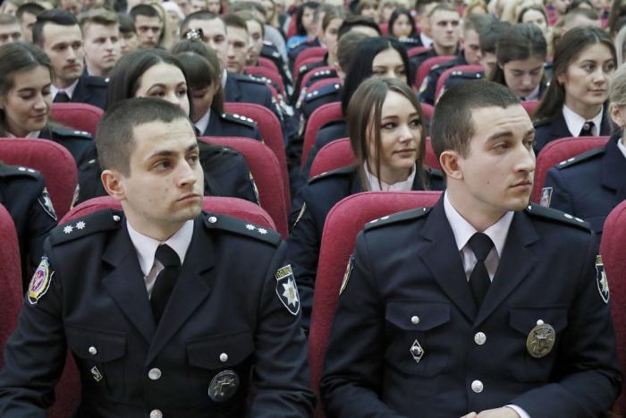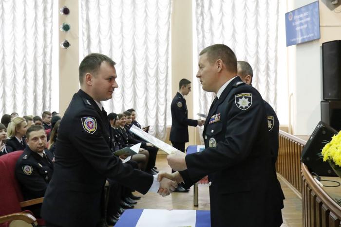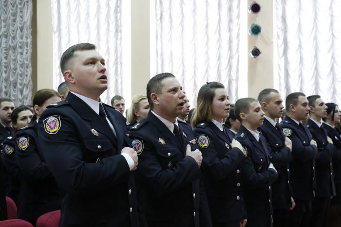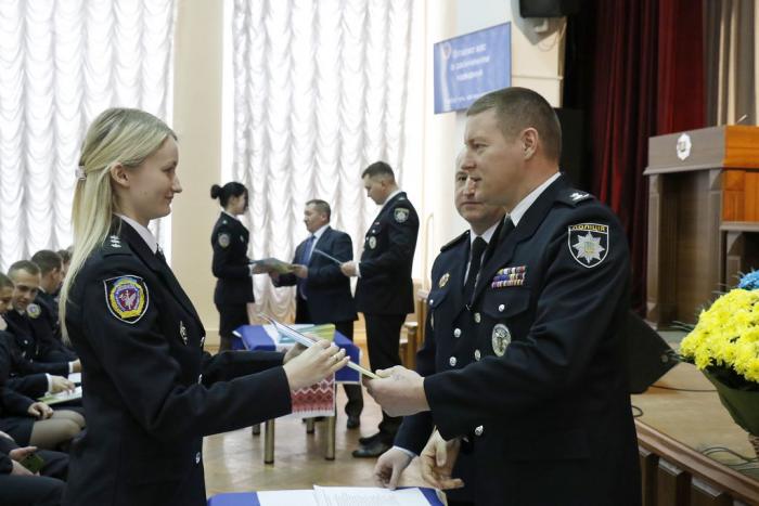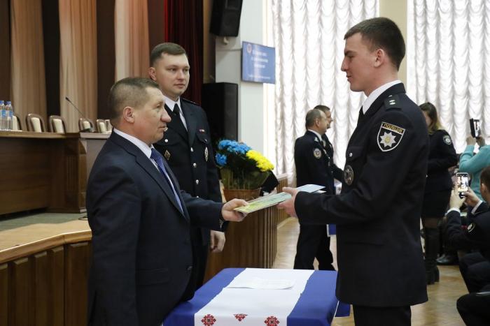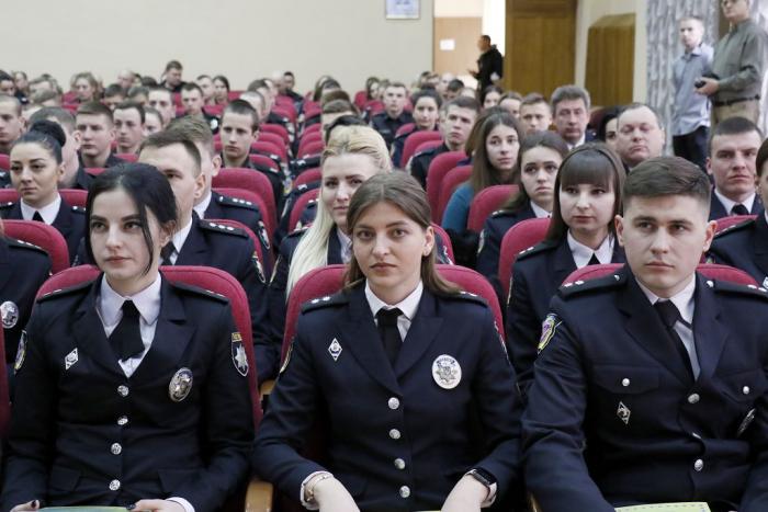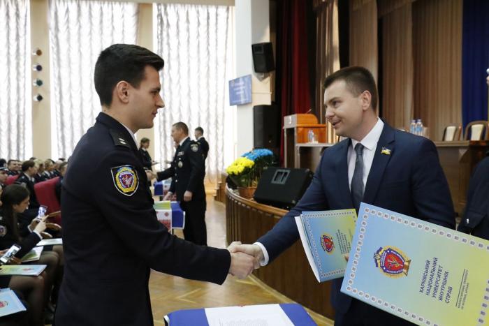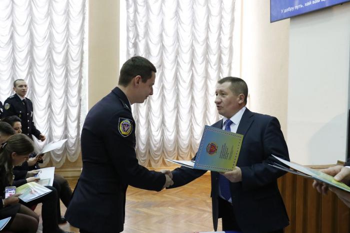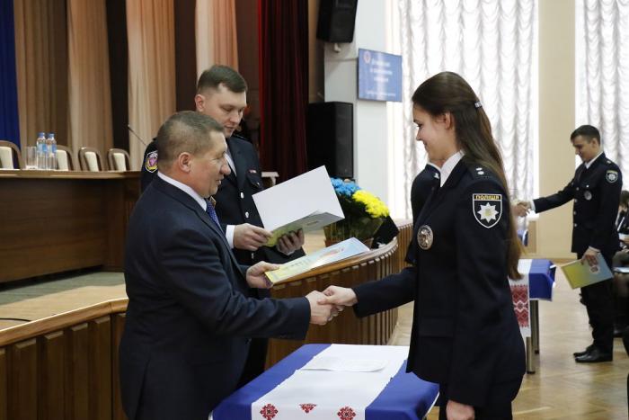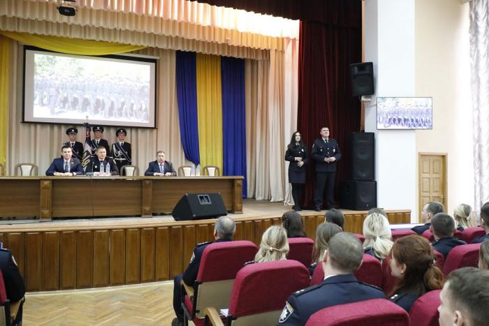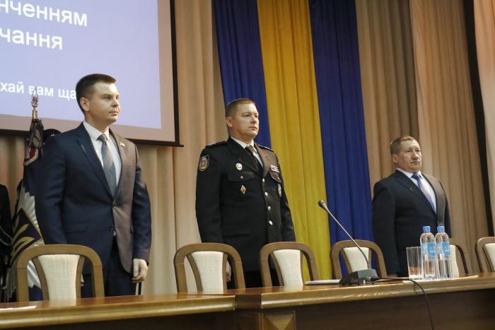 З настановами та словами вітання до молодих поліцейських від імені ректора вишу звернувся перший проректор університету Сергій Бортник. Він побажав юнакам і дівчатам не зупинятися у навчанні, розвиватися, зростати професійно, не забувати рідний університет, бути справжніми патріотами своєї держави, служити чесно і віддано, адже найкраща нагорода для поліцейського – це довіра людей.