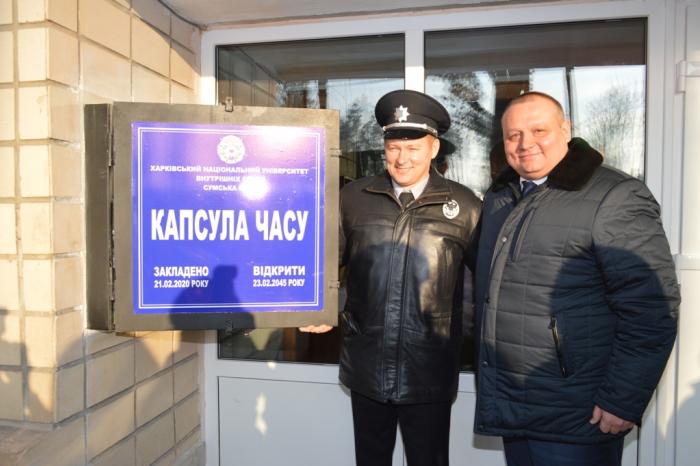 З нагоди 25-річчя Сумської філії Харківського національного університету внутрішніх справ закладено капсулу часу на території Сумського Центру первинної професійної підготовки «Академія поліції». Капсулу буде відкрито через 25 років 23 лютого 2045 року. З побажаннями та настановами до майбутніх поколінь, які будуть працювати та навчатися у Сумській філії, звернулись курсанти, студенти й працівники закладу освіти.