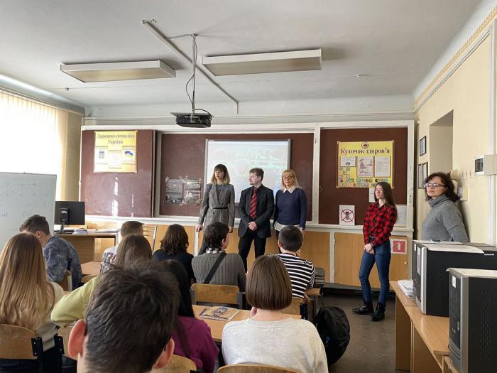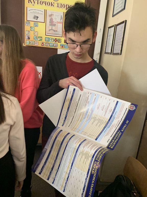 Школярі із зацікавленістю прослухали інформацію та отримали рекламні матеріали з корисною інформацією про заклад вищої освіти.