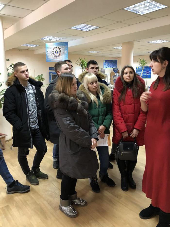 Студенти другого курсу факультету № 6 Харківського національного університету внутрішніх справ під керівництвом доцента кафедри правового забезпечення господарської діяльності факультету № 6 кандидата юридичних наук Артема Подорожнього та провідного фахівця з профорієнтації Харківського міського центру зайнятості Наталії Поставної провели виїзне заняття з навчальної дисципліни «Трудове право» у Харківському міському центрі зайнятості.