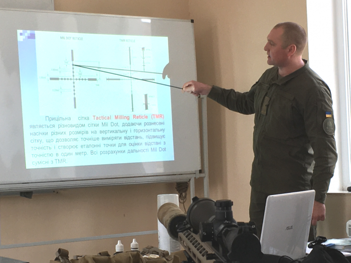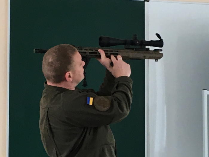 Мета заняття – вдосконалити знання стосовно нового зразка снайперської гвинтівки та підвищення методичних та практичних навичок під час роботи з нею. Заняття проводилося в два етапи – теоретичний і практичний. Офіцери кафедри розглянули питання призначення, будови, бойових властивостей, комплекту постачання снайперських гвинтівок та їх прицілів. Вони детально ознайомилися з сіткою прицілів зброї, особливостями, специфікою обслуговування снайперських гвинтівок та обговорили вправи навчальних стрільб, які будуть проводитися з курсантами.