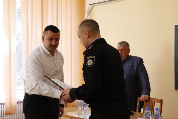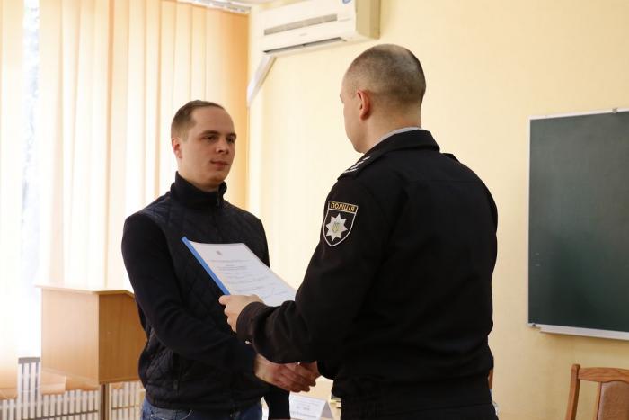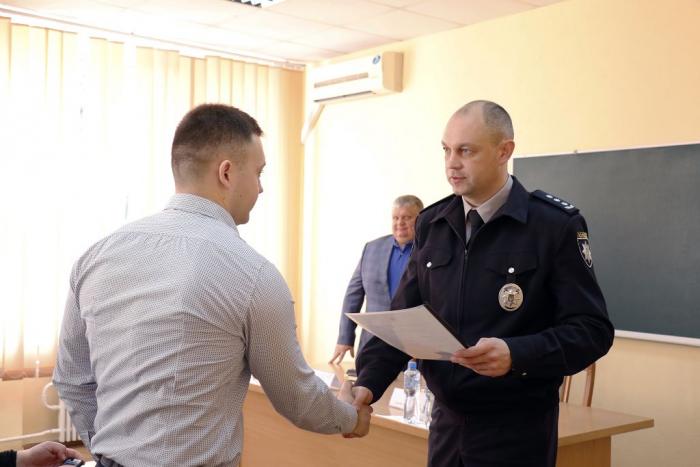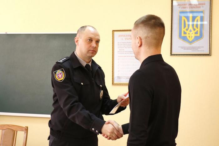 Дипломи про успішне закінчення первинної професійної підготовки 34 випускникам вручили ректор університету полковник поліції Дмитро Швець та директор інституту післядипломної освіти Дмитро Косінов.