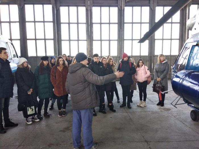 Під час проведення екскурсії учні відвідали ангари з вертольотами, а також тренажерний центр, де для всіх бажаючих командир льотного загону Ігор Шорохов виконав пізнавальний політ у кабіні тренажеру вертольоту Мі-8МТВ-1 з учнями, які перебували на місцях другого пілота і бортмеханіка. Усі відвідувачі отримали інформативні матеріали про коледж та запрошення відвідати День відкритих дверей, який відбудеться у Кременчуцькому льотному коледжі 28 березня.