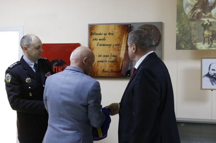 Загальнонаціональну значущість постаті поета підкреслив у своїй промові ректор університету полковник поліції Дмитро Швець: «Шевченко – символ українців, пророк і геній, а водночас – людина серед людей. Для справжніх патріотів він – понад часом та простором. В усі часи Великий Кобзар був, є і буде духовним дороговказом нашої нації. Кажуть, щоб бути символом, потрібно бути справжнім. Вважаю, що саме такою була мотивація згуртованого колективу однодумців, що створили цю експозицію. Спільними зусиллями і з величезним бажанням вони довели справжність, сучасність й актуальність Тараса Шевченка, постать якого об’єднує всіх українців».