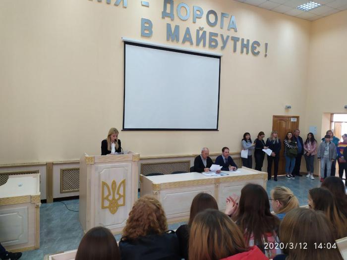 Студенти прослухали інформацію про те, що на період карантину навчальні заняття будуть проводитися за допомогою дистанційних технологій, а також про заборону масових заходів та необхідність дотримання санітарно-гігієнічних норм.