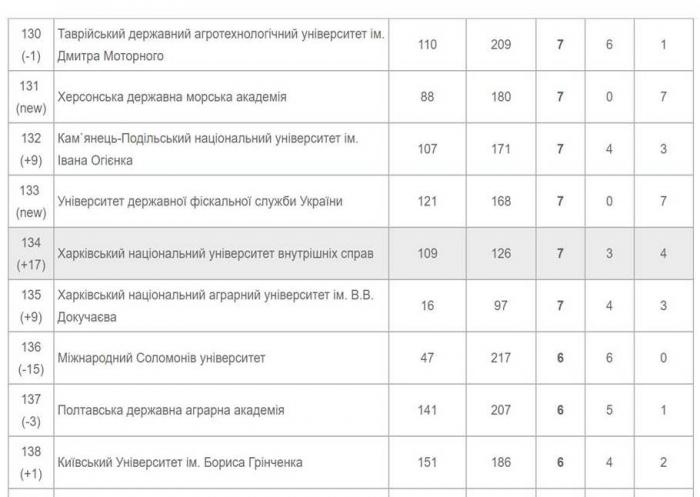 У цьому році до цього рейтингу уперше потрапили ще три ЗВО зі специфічними умовами навчання, які здійснюють підготовку поліцейських: