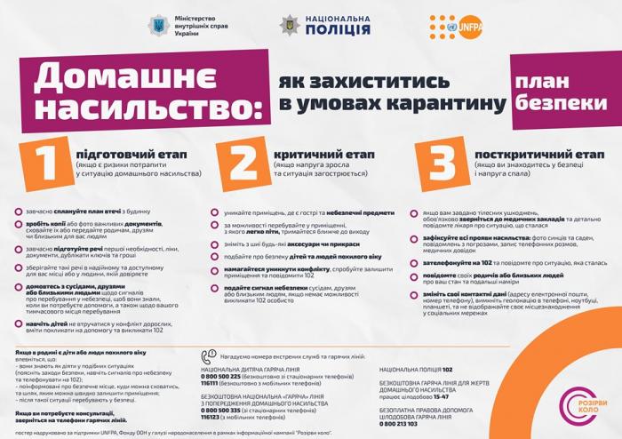 Відтак Міністерство внутрішніх справ та Національна поліція підготували план безпеки, який включає ряд рекомендацій для людей, у яких під час самоізоляції є ризик постраждати від домашнього насильства.
