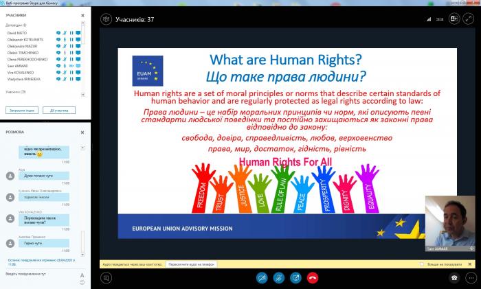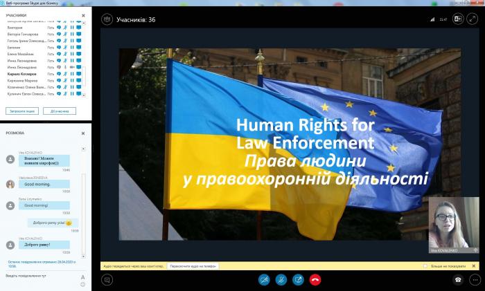 Представники Кременчуцького льотного коледжу ХНУВС Людмила Олійник, Марина Кірюхіна, Ольга Хомяк, Кирило Котляров взяли участь в Дискусійному клубі англійською мовою онлайн на тему «Права людини». Основним спікером вебінару був радник з питань верховенства права Регіонального представництва Консультативної місії Європейського Союзу у м. Харкові Саер Аммар. Радник надав вичерпні відповіді на запитання учасників вебінару.