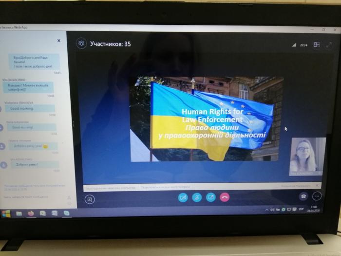 Перебуваючи вдома та дотримуючись усіх карантинних правил, студентки Сумської філії ХНУВС Вікторія Панасенко, Аліна Чабаненко, Анастасія Кисіленко спільно з викладачем кафедри юридичних дисциплін Цвітаною Барановою взяли участь у вебінарі англійською мовою «Права людини у правоохоронній діяльності», під час якого радник з питань верховенства права, юрист Sear Ammar (Німеччина) поділився практичним досвідом з даної тематики.
