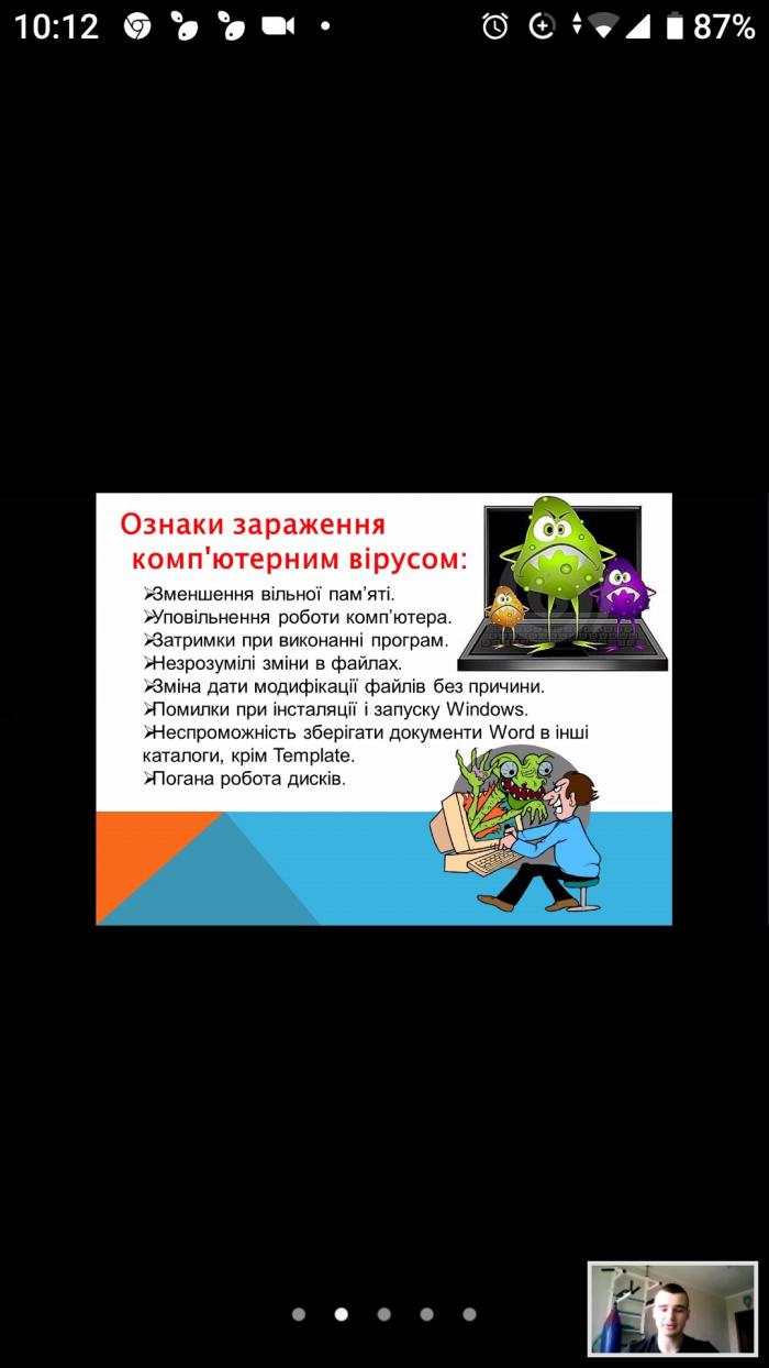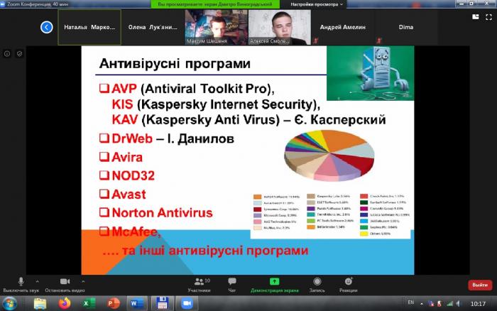 З доповідями виступили курсанти 1 курсу: Олексій Смолевський − «Рівні забезпечення інформаційної безпеки», Максим Шешеня − «Основні правила безпеки в Інтернет», Дмитро Виноградський − «Комп'ютерний вірус і антивірусні програми». У доповідях розглядалися важливі питання інформаційної безпеки − стан захищеності життєво важливих інтересів людини, суспільства й держави. Для проведення відеоконференції була використана сучасна програма Zoom.