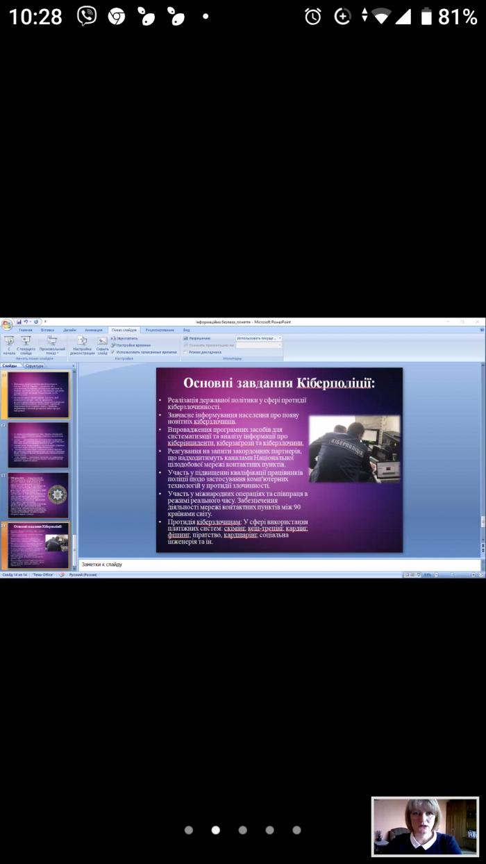 За планом роботи студентського наукового гуртка кафедри соціально-економічних дисциплін Сумської філії ХНУВС «Актуальні проблеми розвитку національної економіки в умовах глобалізації» був проведений круглий стіл «Інформаційна безпека: стан, виклики сьогодення». Особливості проведення освітнього процесу в умовах карантину спонукали учасників круглого столу зустрітися й обговорити нагальні питання інформаційної безпеки у форматі відеоконференції. Модератор заходу – доцент кафедри, кандидат економічних наук Світлана Виганяйло.