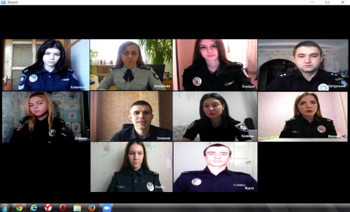 На кафедрі поліцейської діяльності та публічного адміністрування Харківського національного університету внутрішніх справ проведено дистанційне засідання наукового гуртка. Відповідно до плану роботи гуртка було розглянуто наступні питання: адміністративна відповідальність за правопорушення, що посягають на громадський (публічний) порядок і безпеку (доповідач – слухач магістратури факультету № 3 Дар’я Кравець); проблемні аспекти притягнення до адміністративної відповідальності за відсутності документа, що посвідчують особу громадянина (доповідач – слухач магістратури факультету № 3 Олександр Шатурський); організація та проведення підготовки офіцерів-кінологів (доповідач – курсант 1 курсу факультету № 3 Єва Доленко); загальна характеристика дисциплінарної відповідальності поліцейських (доповідач – курсант 2 курсу факультету № 3 Юлія Меренець).