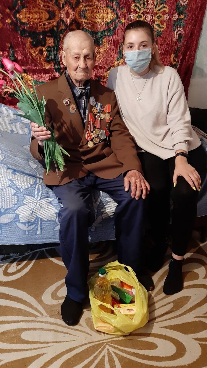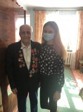 Студентка Альона Труфанова разом із мамою, за багаторічною сімейною традицією, привітали Павла Ілліча Кушнаренка. У свої дев’ятнадцять років Павло Кушнаренко мав військове звання лейтенант, володів німецькою мовою та був бійцем «невидимого фронту» – розвідником. Він пережив суворі часи полону, та, попри все, йому вдалося повернутися й стати до військової справи.