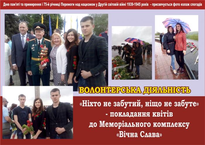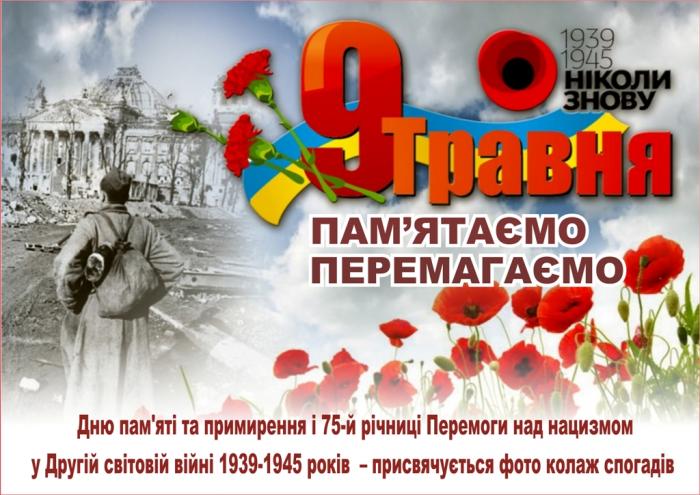 В історії кожної нації, кожного народу є пам’ятні дати, які залишаються назавжди в людській пам’яті. Для українців, такими датами є 8 та 9 травня – День пам'яті та примирення і День Перемоги над нацизмом у Другій світовій війні.