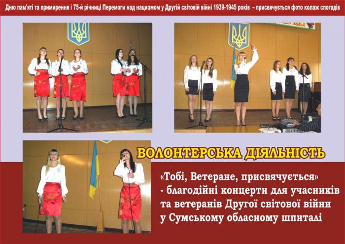 У Сумській філії Харківського національного університету внутрішніх справ для збереження пам'яті про внесок та роль українського народу у перемогу над нацизмом, вшановування ветеранів війни, учасників українського визвольного руху, жертв нацистів щороку проводяться заходи патріотичного спрямування.