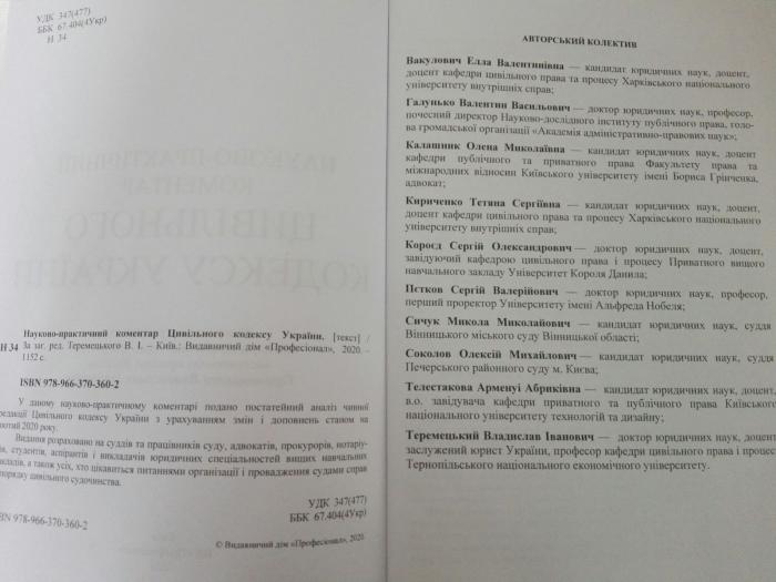 Доценти кафедри цивільного права та процесу факультету № 6 Тетяна Кириченко та Елла Вакулович взяли участь у роботі колективу авторів по створенню науково-практичного коментаря Цивільного кодексу України. У підготовці видання взяли участь вчені-цивілісти, судді, нотаріуси.