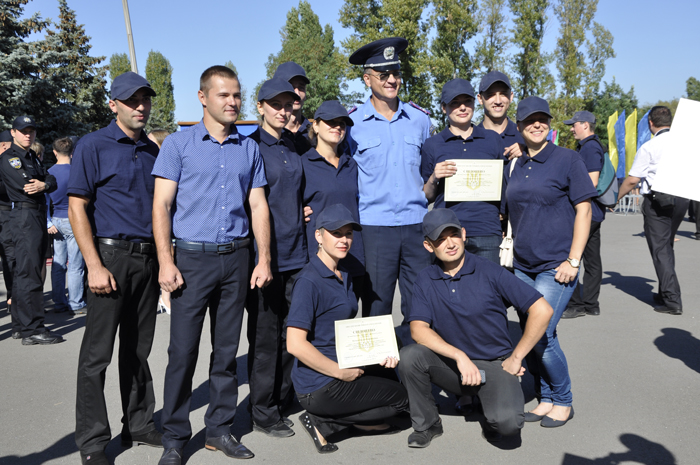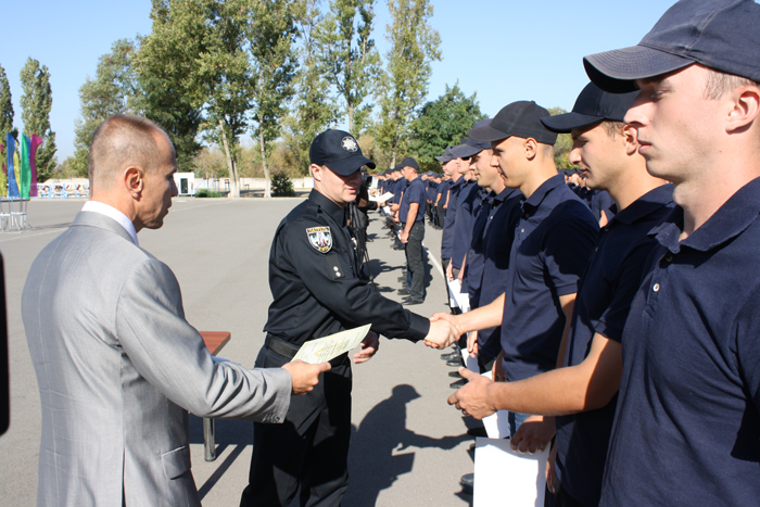 У Харківському національному університеті внутрішніх справ відбулися урочистості з нагоди вручення сертифікатів випускникам курсів первинної професійної підготовки працівників підрозділів патрульної служби Харкова. Майже 800 працівників нової поліції найближчими днями готові приступити до виконання своїх обов’язків. Сергій Гусаров – ректор Харківського національного університету внутрішніх справ, на базі якого здійснювалась підготовка поліцейських, – поздоровив усіх випускників із знаменною подією у житті, побажав успіхів і зазначив, що з отриманням сертифікату, навчання не закінчується. Необхідно набувати практичного досвіду, постійно підвищувати свій професійний рівень. Ректор також зазначив, що служба у новій поліції для випускників починається у непростий для країни час і запропонував усім присутнім вшанувати хвилиною мовчання пам’ять усіх, хто загинув, захищаючи мир і спокій нашої держави.