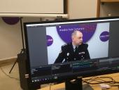 Дмитро Володимирович розповів журналістам, як проходить підготовка правоохоронців в умовах епідемії коронавірусу, як відбувається процес дистанційного навчання, а також про волонтерський рух курсантів та студентів університету. Дмитро Швець відповів на запитання щодо Всеукраїнського онлайн турніру з кіберспорту «Ukrainian Open Quarantine Esports Cup».