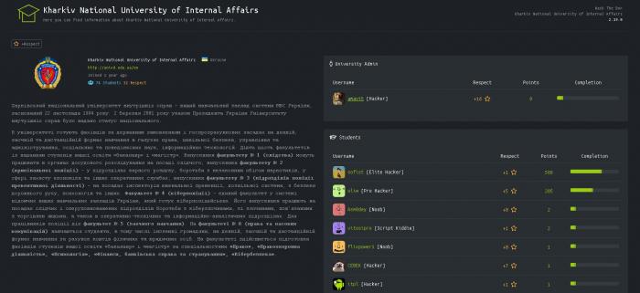 Харківський національний університету внутрішніх справ посів 25 місце серед 340 університетів світу на інтернет-платформі «Hack The Box», призначеній для відпрацювання у спеціальному віртуальному середовищі практичних навичок щодо тестування на проникнення до різного типу мережних вузлів.