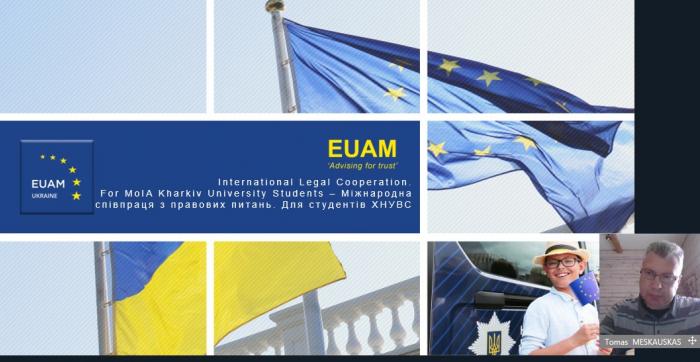 Для здобувачів вищої освіти та науково-педагогічного складу Харківського національного університету внутрішніх справ, Сумської філії та Кременчуцького льотного коледжу проведено вебінар англійською мовою на тему «Міжнародна правова допомога в межах ЄС та з іншими країнами». Основний спікер заходу – старший радник з питань прокуратури Регіонального представництва Консультативної місії Європейського Союзу у м. Харків Томас Мешкаускас (Литва).