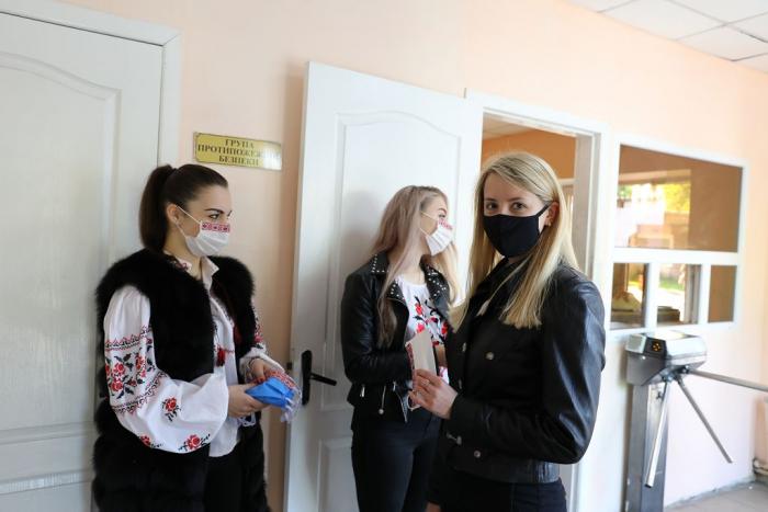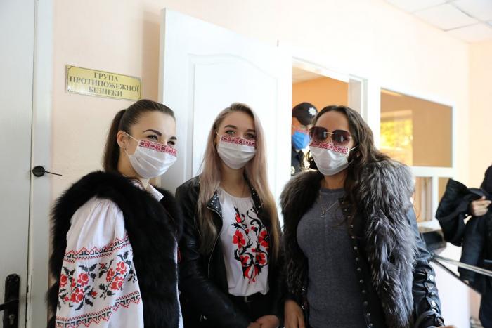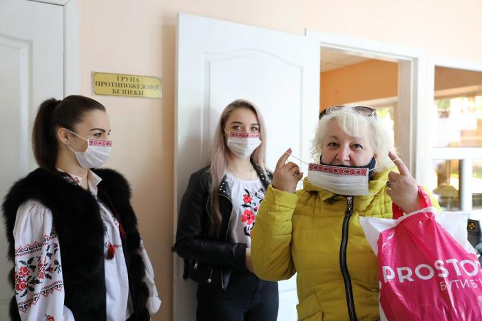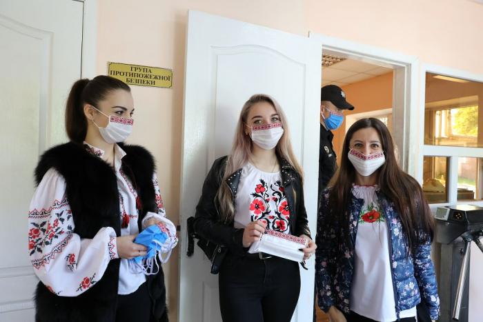 У святковий день, зважаючи на карантин, працівники вишу отримали оригінальні привітання-подарунки від керівництва університету – захисні маски з українським орнаментом.