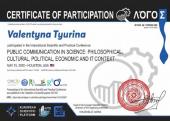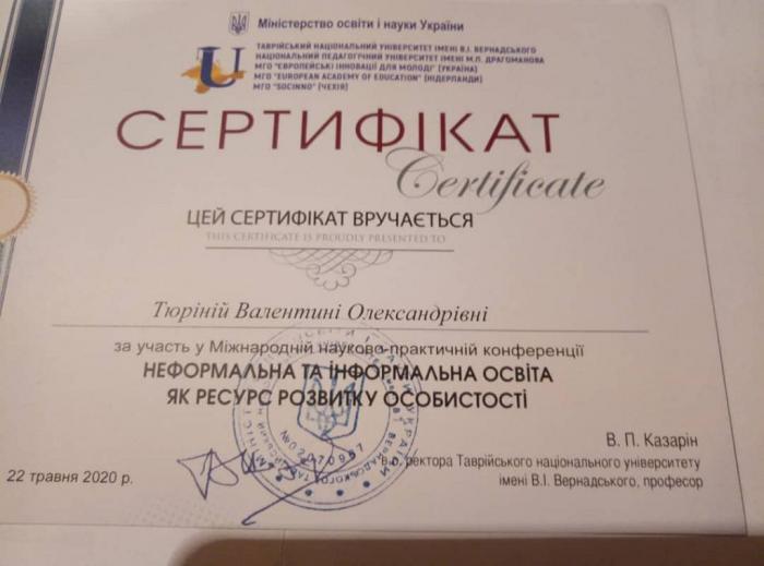 Доктор педагогічних наук, професор Валентина Тюріна взяла дистанційно участь у кількох конференціях: Міжнародній науково-практичній конференції «Неформальна та інформальна освіта як ресурс розвитку особистості», яка відбулась у Таврійському університеті імені В.І. Вернадського (м. Київ), Міжнародній науково-практичній конференції «Стратегічні напрямки розвитку науки: фактори впливу та взаємодії» (м. Суми), а також у Міжнародній науково-практичній конференції «Громадська комунікація в науці: філософський, культурний, політичний, економічний та інші контексти», яка відбулась у м. Хьюстон (США). Отримані під час конференцій знання будуть використані у навчальному процесі.