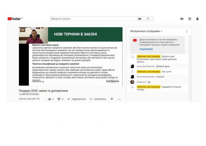 Доцентка кафедри правового забезпечення господарської діяльності факультету № 6 Ірина Василько взяла участь в онлайн-вебінарі «Тендери 2020: зміни та доповнення», яка організована «Sherman Law Company». Спікером вебінару став Вадим Євіч – радник, керівник практики трудового права «Sherman Law Company».