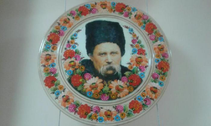 Декан факультету № 2 Костянтин Гарбузюк подарував оригінальну декоративну таріль з портретом Тараса Шевченка, створену за традиціями петриківського розпису, яка посіла гідне місце на настінному панно – мистецькій Шевченкіані нашої експозиції.