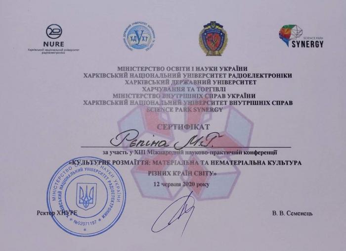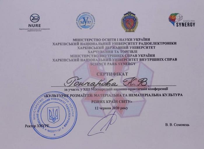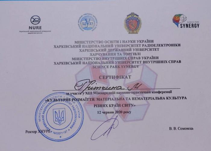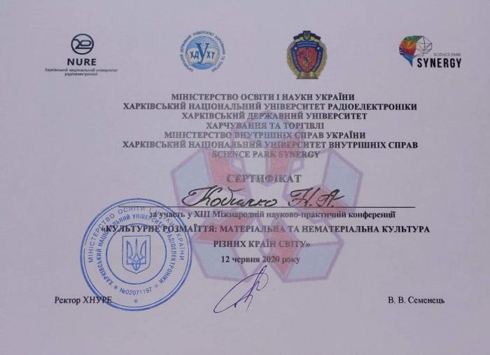Відбулася ХІІІ Міжнародна науково-практична конференція «Культурне розмаїття: матеріальна та нематеріальна культура різних країн», співорганізатором якої виступив Харківський національний університет внутрішніх справ. До складу організаційного комітету увійшли: завідувач кафедри соціально-гуманітарних дисциплін факультету № 6, доктор історичних наук, професор Володимир Греченко, доцент кафедри соціально-гуманітарних дисциплін факультету № 6, кандидат історичних наук Віталій Заборовський та старший викладач кафедри соціально-гуманітарних дисциплін факультету № 6, кандидат філологічних наук Наталія Кобилко. З огляду на епідеміологічну ситуацію в нашій країні, захід був проведений в онлайн-форматі. Мета конференції – дослідити культури різних країн світу: мову, історію, літературу, архітектуру, звичаї, обряди, ремесла, національні свята та ін.