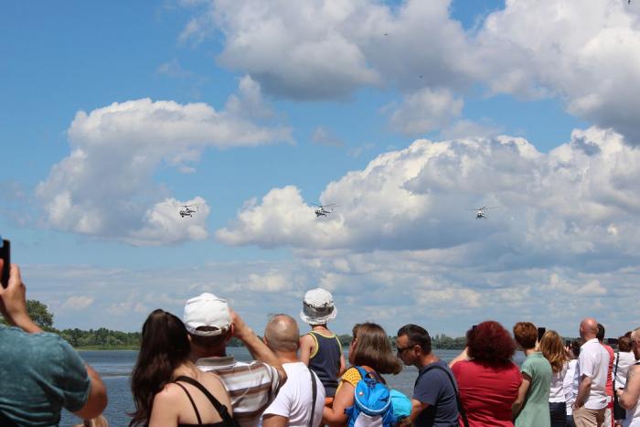 Також тренувальний політ на Мі-8 виконали пілоти ЗАТ «Українські вертольоти» та випускники коледжу у складі екіпажу МТВ-1. Один аеровізуальний проліт літака ХАЗ-30 здійснили льотчики-випробувачі Харківського аеродрому імені В. С. Гризодубової Товариства сприяння обороні України Сергій Філатов та Сергій Комін.