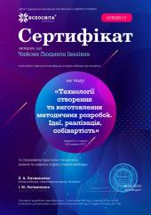 Викладачка циклової комісії філологічних дисциплін Кременчуцького льотного коледжу Харківського національного університету внутрішніх справ Людмила Чижова дистанційно пройшла підвищення кваліфікації за видом «вебінар» на тему: «Технології створення та виготовлення методичних розробок. Ідеї, реалізація, собівартість».