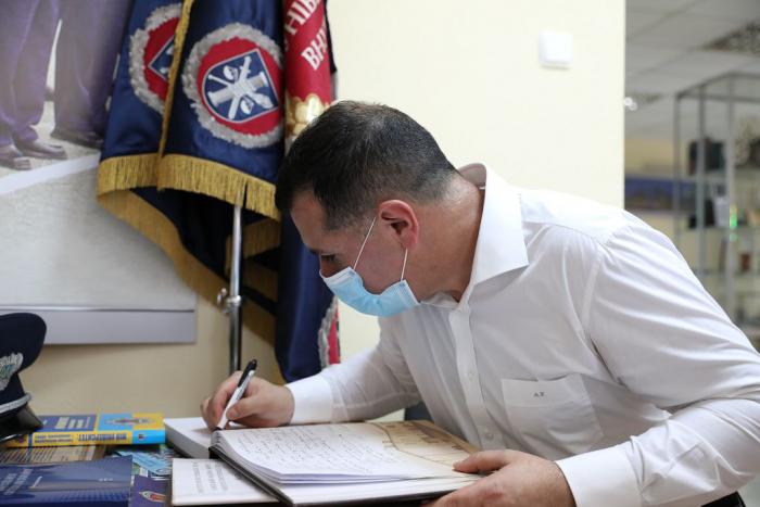 Харківський національний університет внутрішніх справ відвідали представники Почесного Консульства Республіки Казахстан у Харківській, Полтавській та Сумській областях на чолі з Почесним консулом Республіки Казахстан у Харкові Еміном Наджафлі. Вони зустрілися та обговорили нагальні питання з керівництвом університету. У зустрічі взяли участь ректор вишу Дмитро Швець, перший проректор Сергій Бортник, проректори Михайло Бурдін, Леонід Могілевський, Анатолій Клочко, декан факультету № 6 Оксана Брусакова.