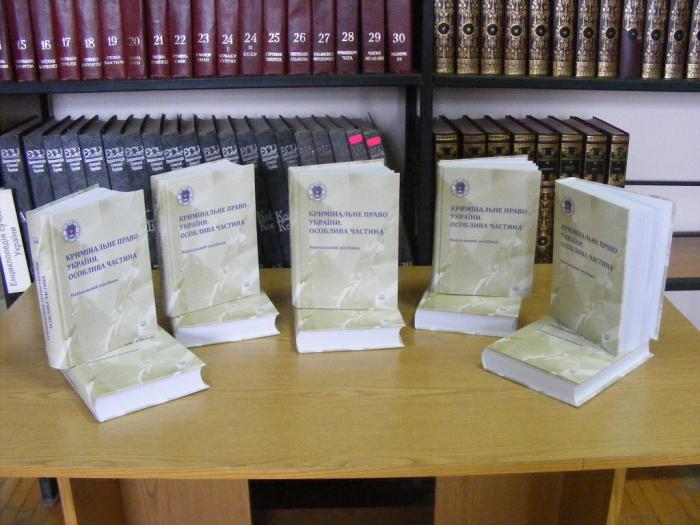 Кафедра кримінального права і кримінології факультету № 1 подарувала бібліотеці новий навчальний посібник «Кримінальне право України. Особлива частина», виданий у 2020 році. Видання розглядає основні питання навчальної дисципліни «Кримінальне право України. Особлива частина».
