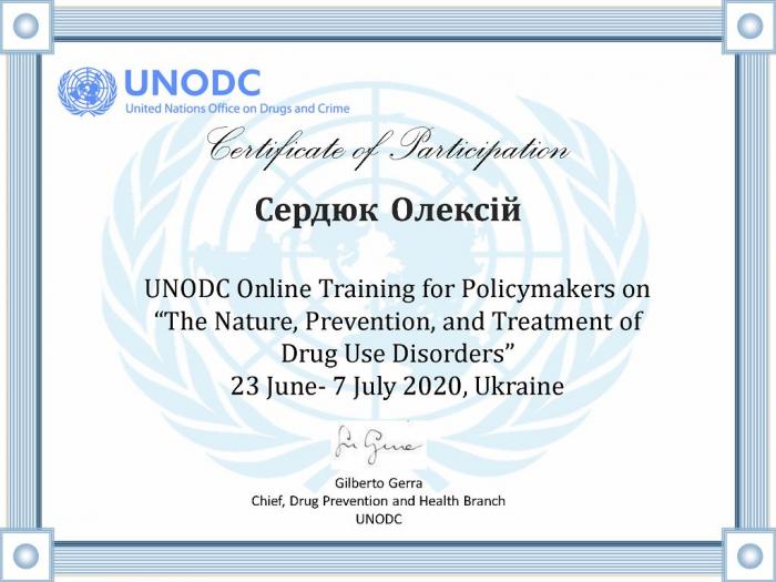 Представники університету – завідувач та заступник завідувача НДЛ з проблем протидії злочинності Костянтин Бугайчук та Олексій Сердюк – взяли участь в онлайн-тренінгу Управління ООН по Наркотикам і злочинності (UNODC) «The Nature, Prevention, and Treatment of Drug Use Disorders» (Природа, профілактика та лікування розладів, викликаних вживанням наркотичних речовин). У тренінговій програмі спільно з представниками Міністерства охорони здоров’я, Міністерства внутрішніх справ, Міністерства юстиції та Національної поліції України, інших державних органів взяли участь представники наукових установ, громадських організацій та об’єднань осіб, які живуть із залежністю.